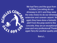 We returned back to this property after 15 years to extend the driveway to add a connected Caravan Carport. Pest control, new drainage to suit the updates, and a brushed finish. A great improvement to access and the owners are thrilled with the results.