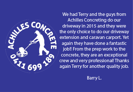Plain concrete is a great way to get the job done and create a functional space for entertaining, driveways or paths. Stencil edging is used to add interest to plain concrete, and is also available are diamonds, circles, compasses and logos. For a fuller coloured effect or stencilled design you can also look at our works with Stencil Concrete.